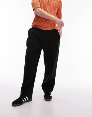 Topman – Jogginghose in Schwarz mit weitem Schnitt und Bundfalten