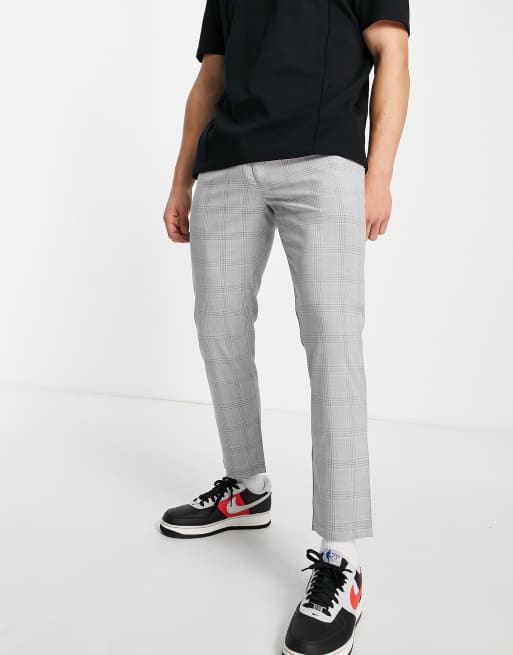 Topman – Karierte Hose in Grau mit engem Schnitt und elastischem Bund