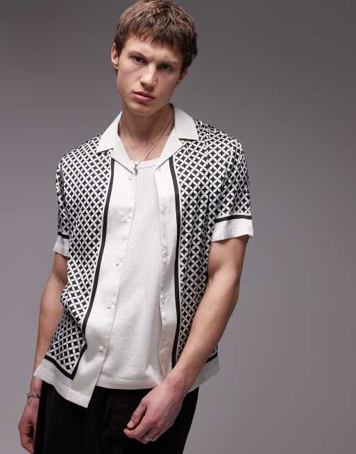 Topman – Kurzärmliges Hemd mit geometrischem Muster in Schwarz