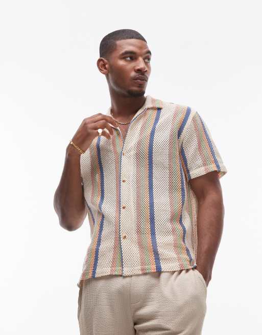 Topman – Kurzärmliges, mehrfarbiges Häkel-Hemd mit Streifen