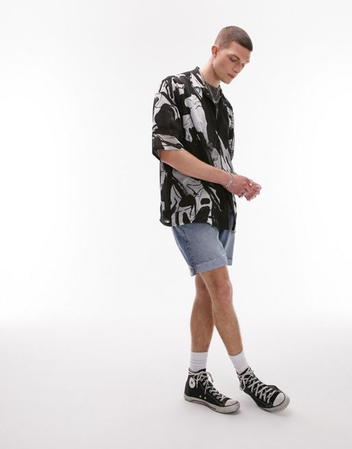 Topman – Kurzärmliges, mehrfarbiges, transparentes Hemd mit Reverskragen und abstraktem Muster in lockerer Passform