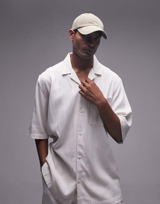 Topman – Kurzärmliges, strukturiertes Hemd in Weiß mit lockerem Schnitt und Reverskragen, Kombiteil