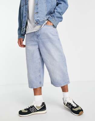 Topman – Lang geschnittene Jeansshorts in mittlerer Waschung