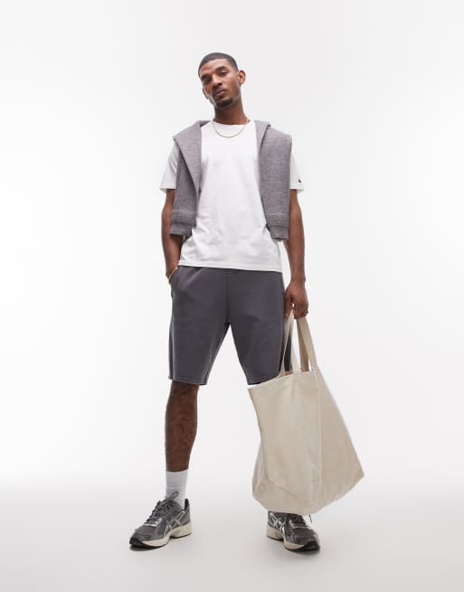 Topman – Lang geschnittene Shorts in verwaschenem Grau mit strukturiertem Einsatz