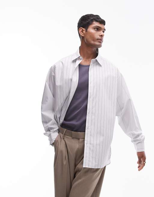 Topman – Langärmliges Oversize-Hemd in Cremeweiß mit Nadelstreifen