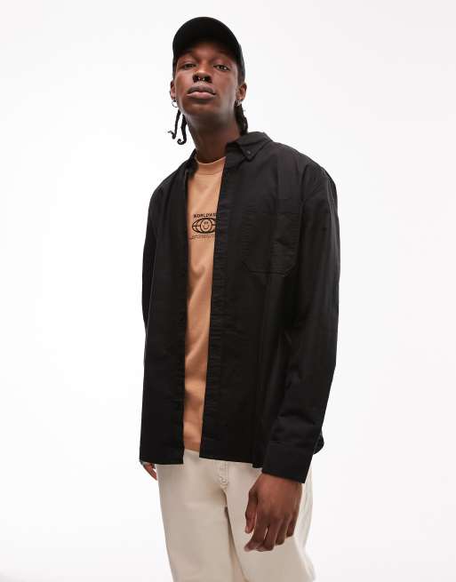 Topman – Lässig geschnittenes, kurzärmliges Oxford-Hemd in Schwarz