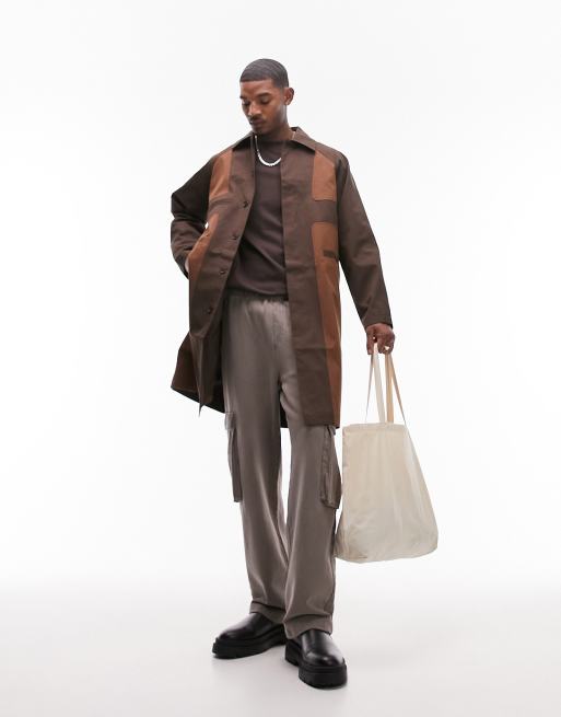 Topman – Lässiger Trenchcoat in Braun mit Einsätzen in Kontrastfarbe