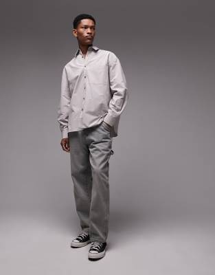 Topman – Limited – Langärmliges Oversize-Hemd in Stone mit spitzem Kragen
