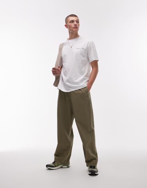 Topman – Locker geschnittene Ripstop-Hose in Khaki