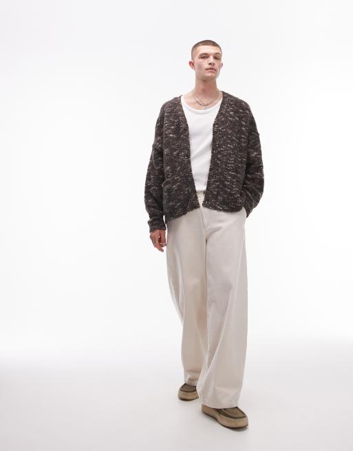 Topman – Locker geschnittene Strickjacke aus Bouclé in gemustertem Braun