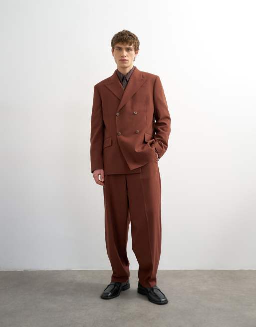 Topman – Lockerer, zweireihiger Anzug in Rostrot mit Wolloptik