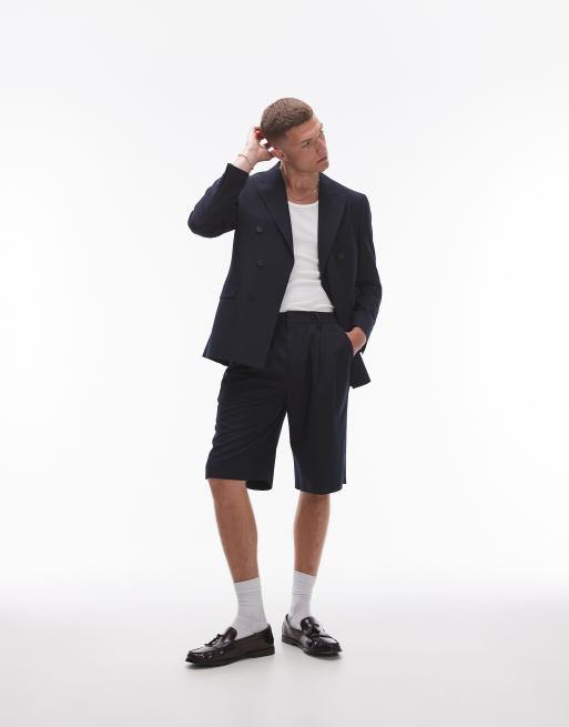 Topman – Longline-Shorts aus einer Leinenmischung in Marineblau