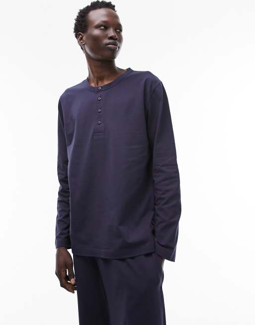 Topman – Lounge-Henley-Longsleeve in Marineblau