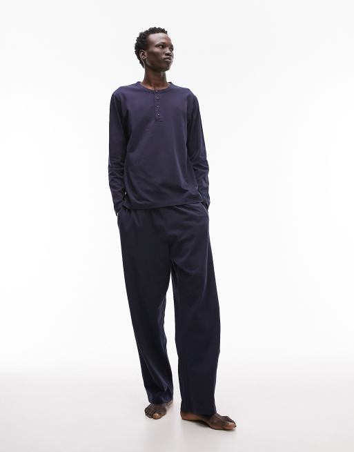 Topman – Lounge-Set mit Henley-Longsleeve und Jogginghose in Marineblau