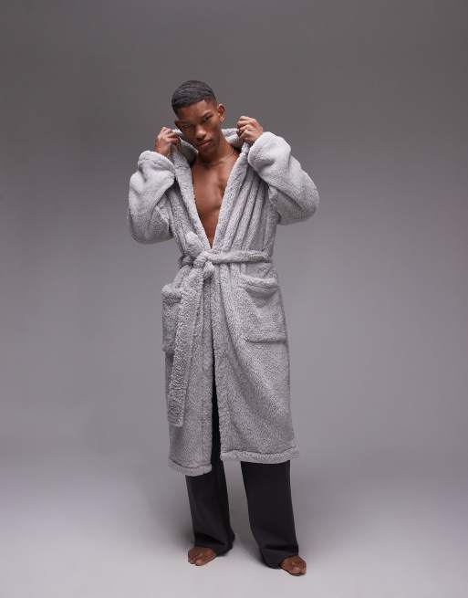 Topman – Loungewear – Flauschiger Bademantel in Hellgrau