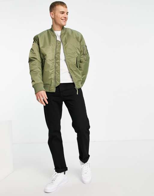 Topman – MA1 – Wattierte Bomberjacke in Olivgrün