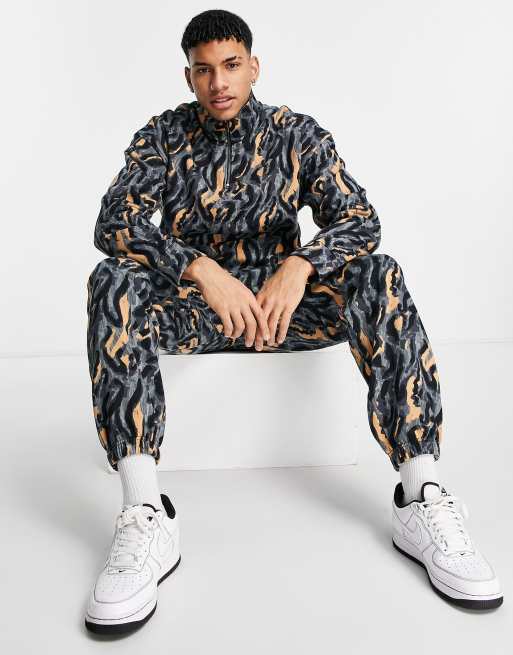 Topman – Oversize-Jogginghose in Khaki mit Animal-Print in gemalter Optik