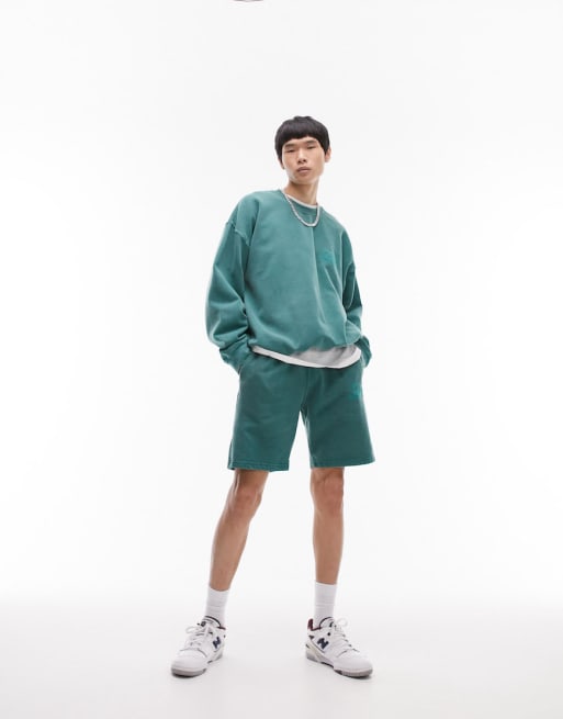 Topman – Oversize-Set in verwaschenem Grün mit Stickerei