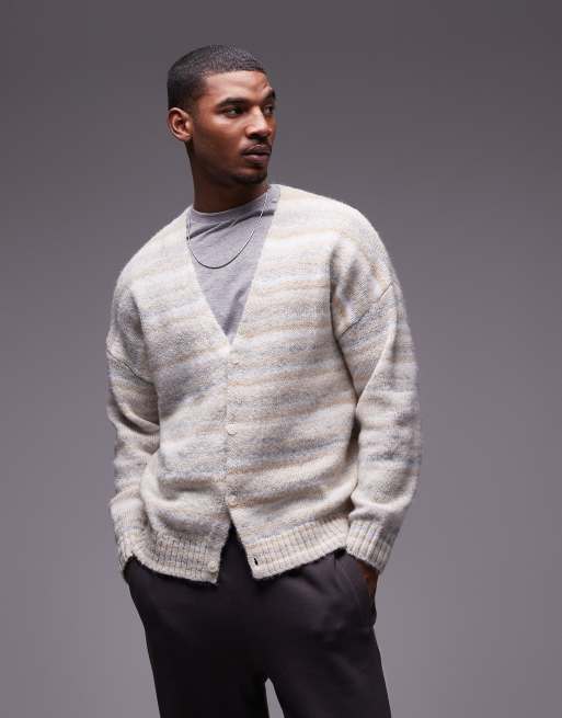 Topman – Oversize-Strickjacke in Salbeigrün und Cremeweiß mit abstraktem Muster