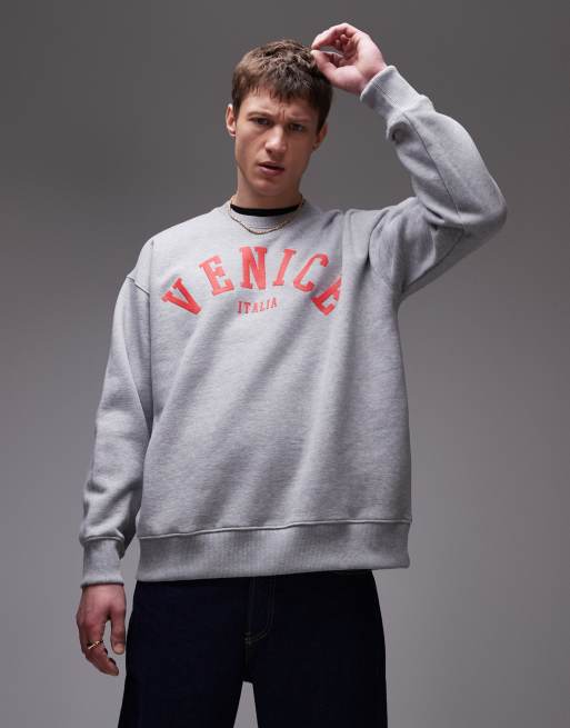 Topman – Oversize-Sweatshirt in Grau meliert mit strukturiertem Venedig-Print