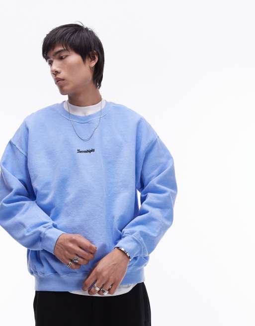 Topman – Oversize-Sweatshirt in Hellblau mit gesticktem „Serendipity“-Schriftzug