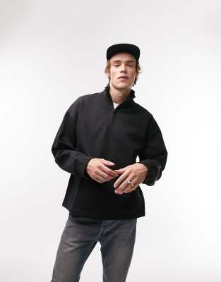 Topman – Oversize-Sweatshirt in Schwarz mit kurzem Reißverschluss