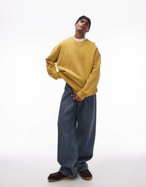 Topman – Oversize-Sweatshirt in verwaschenem Gelb
