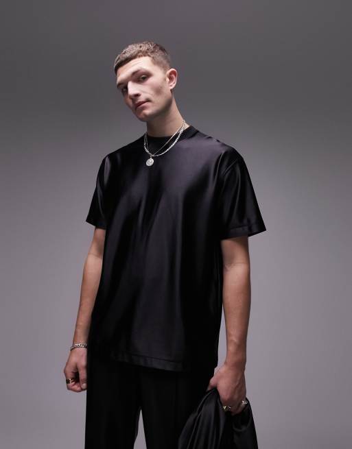 Topman – Oversize-T-Shirt in hochglänzendem Schwarz