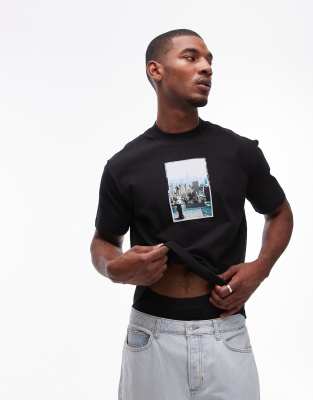 Topman – Oversize-T-Shirt in Schwarz mit „New York“-Print