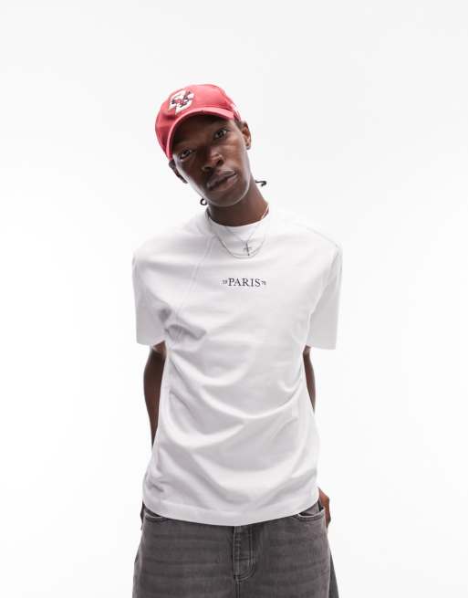 Topman – Oversize-T-Shirt in Weiß mit „Paris“-Stickerei auf der Brust und geteilter Optik