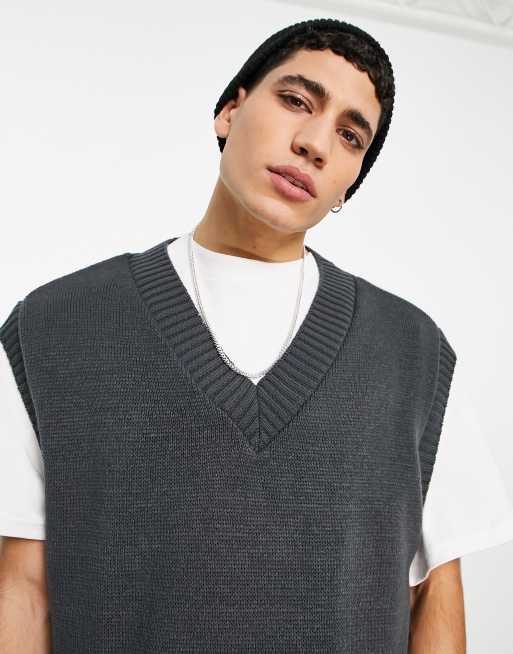 Topman – Oversize-Tanktop aus Strick in Anthrazit