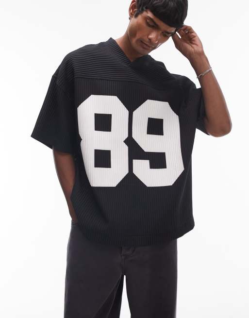 Topman – Plissiertes Oversize-T-Shirt in Schwarz mit Print