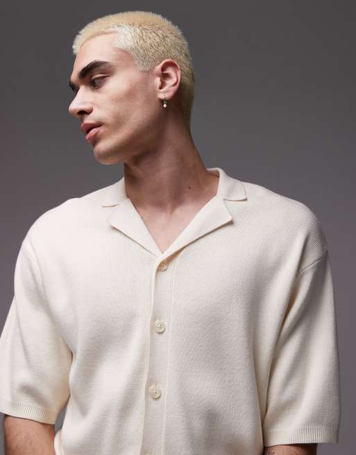 Topman – Polohemd aus Strick in Ecru mit Revers-Kragen