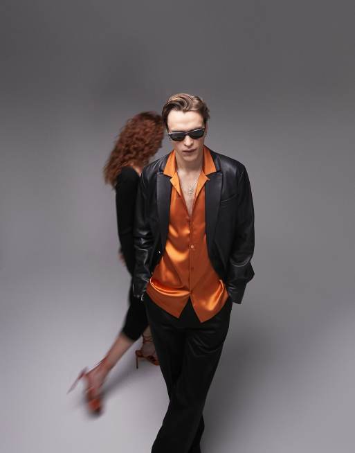 Topman – Premium – Kurzärmliges Satinhemd in dunklem Orange