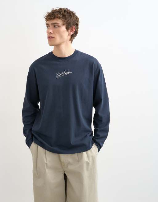 Topman – Relaxed-Fit-Langarmshirt in Marineblau mit „Ciao Bella“-Print.