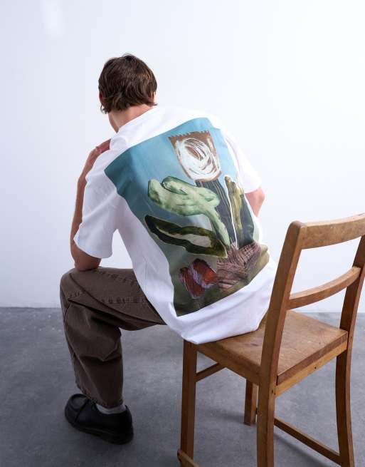 Topman – Relaxed-Fit-T-Shirt in Weiß mit floralem Collagen-Print auf Vorder- und Rückseite