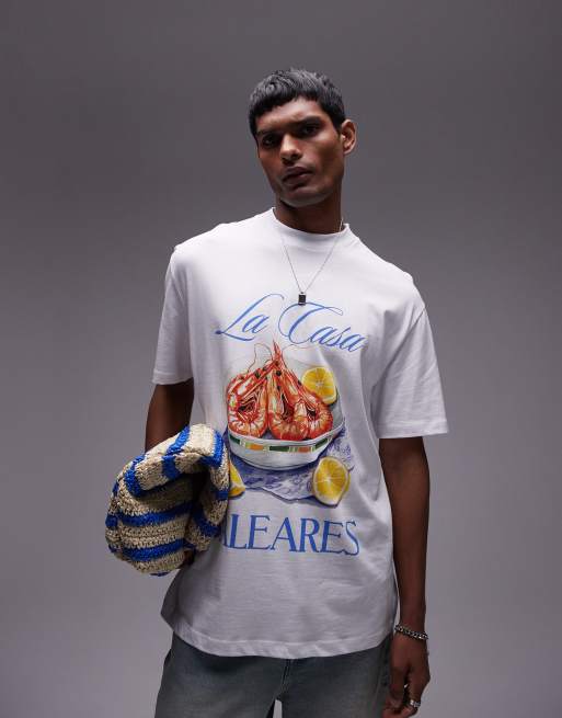 Topman – Relaxed-Fit-T-Shirt in Weiß mit „La Casa Baleares“-Print