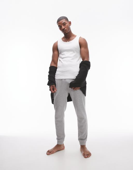 Topman – Schmal zulaufende Lounge-Jogginghose in Hellgrau mit Waffelstruktur