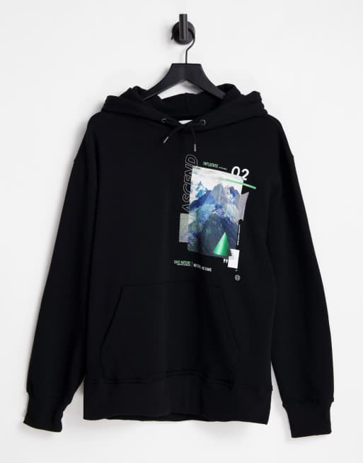 Topman – Schwarzer Kapuzenpullover mit abstraktem Print