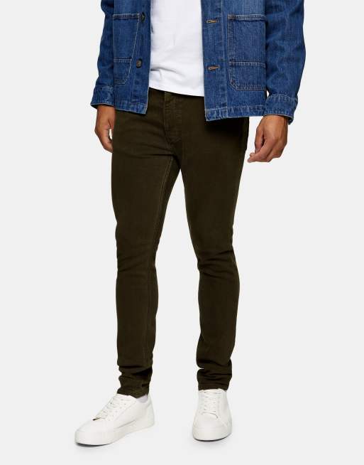 Topman – Stretch-Jeans aus khaki Baumwollmix mit engem Schnitt - MGREEN