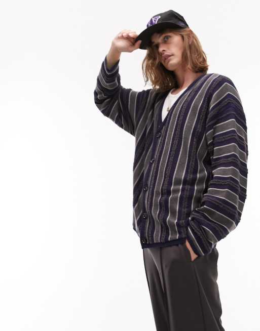 Topman – Strickjacke mit Längsstreifen in Grau und Marineblau
