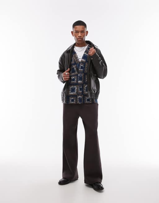 Topman – Strukturierte Baggy Fit Jogginghose in Braun