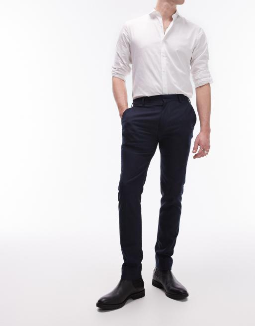 Topman – Strukturierte Hose in Marineblau mit sehr engem Schnitt