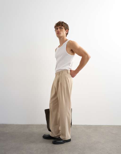 Topman – Strukturierte Hose in Steinbeige mit weitem Schnitt