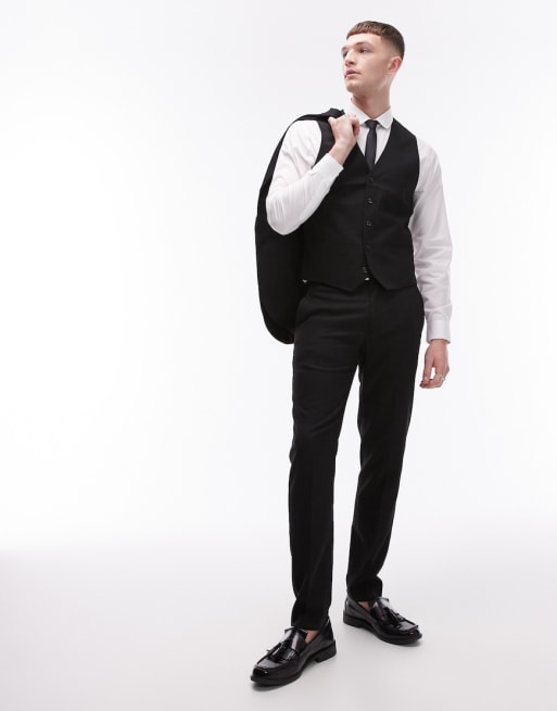 Topman – Strukturierter Anzug mit engem Schnitt in Schwarz