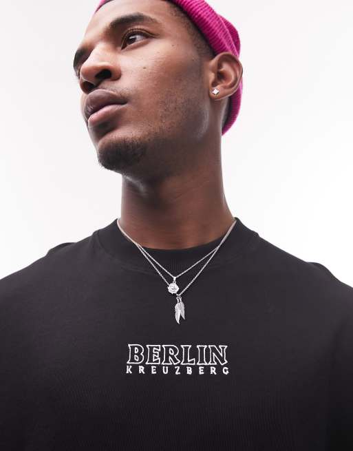 Topman – Super-Oversize-T-Shirt in Schwarz mit „Berlin“-Stickerei