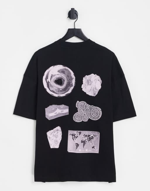 Topman – Super-Oversize-T-Shirt in Schwarz mit Fossilien-Print auf Vorder- und Rückseite