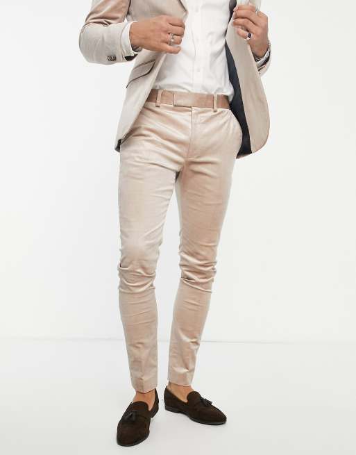 Topman – Supereng geschnittene Anzughose aus Cord in Stein