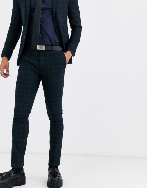 Topman – Superenge Anzughose in Marineblau mit Karomuster