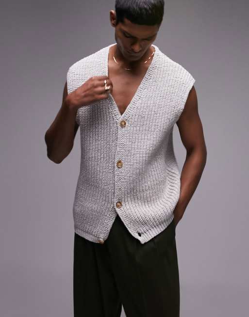 Topman – Tanktop aus gedrehtem Garn in meliertem Ecru